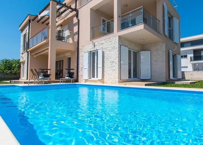 Potpuno opremljena kuhinja s električnim kuhalom, hladnjakom i pećnicom nalazi se na posjedu. Do zračne luke Zadar možete doći za 57 minuta vožnje.